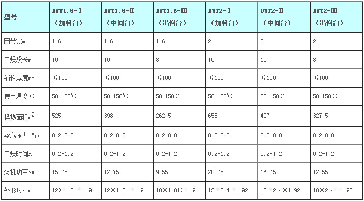 注:1、將上表中統一規格的網帶干燥機加料臺、中間臺、出料臺三臺串聯使用,保證蔬菜脫水干燥生產工藝要求,顯著提高產量,有效保證產品質量。