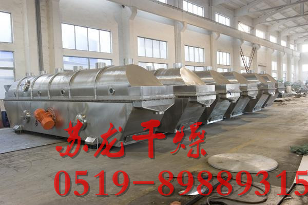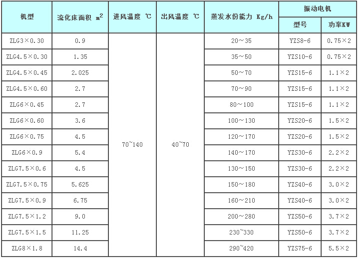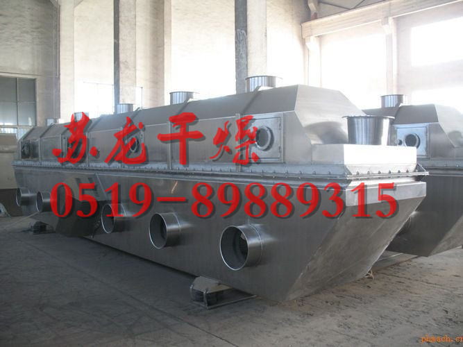 物料自進料口進入機內, 在振動力作用下, 物料沿水平方向拋擲向前連續運動,熱風向上穿過流化床同濕料換熱后, 濕空氣經旋風分離器除塵后由排風口排出, 干燥物料由排料口排出。特點: