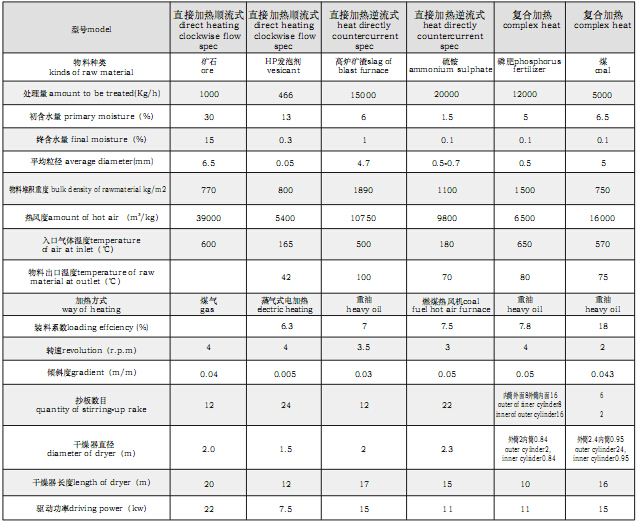 1.化工、礦山、冶金等行業(yè)大顆粒,比重大物料干燥,如:礦山、高爐礦渣、煤、金屬粉末、磷肥、硫銨2.對(duì)有特殊要求的粉末、顆粒狀物料的干燥,如: Hp發(fā)泡劑、酒糟渣、輕質(zhì)碳酸鈣、活性白土、磁粉、石墨、藥渣。