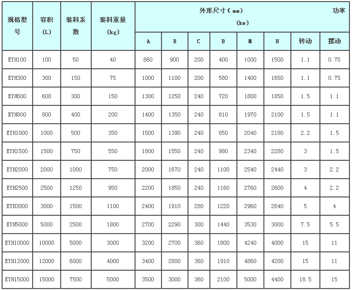 EYH 二維運動混合機的轉筒可同時進行二個運動,一個為轉筒的轉動,另一個為轉筒隨擺動架的擺動。被混合物料在轉筒內隨轉筒轉動、翻轉、混和的同時,又隨轉筒的擺動而發生左右來回的摻混運動,在這兩個運動的共同作用下,物料在短時間內得到充分的混合。EYH二維混料機適合所有粉、粒狀物料的混合。